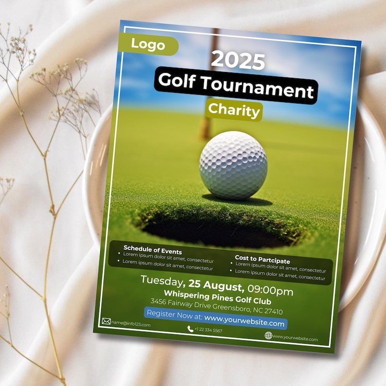 Golf Tournament Fundraiser Flyer Editable Template Instant Download