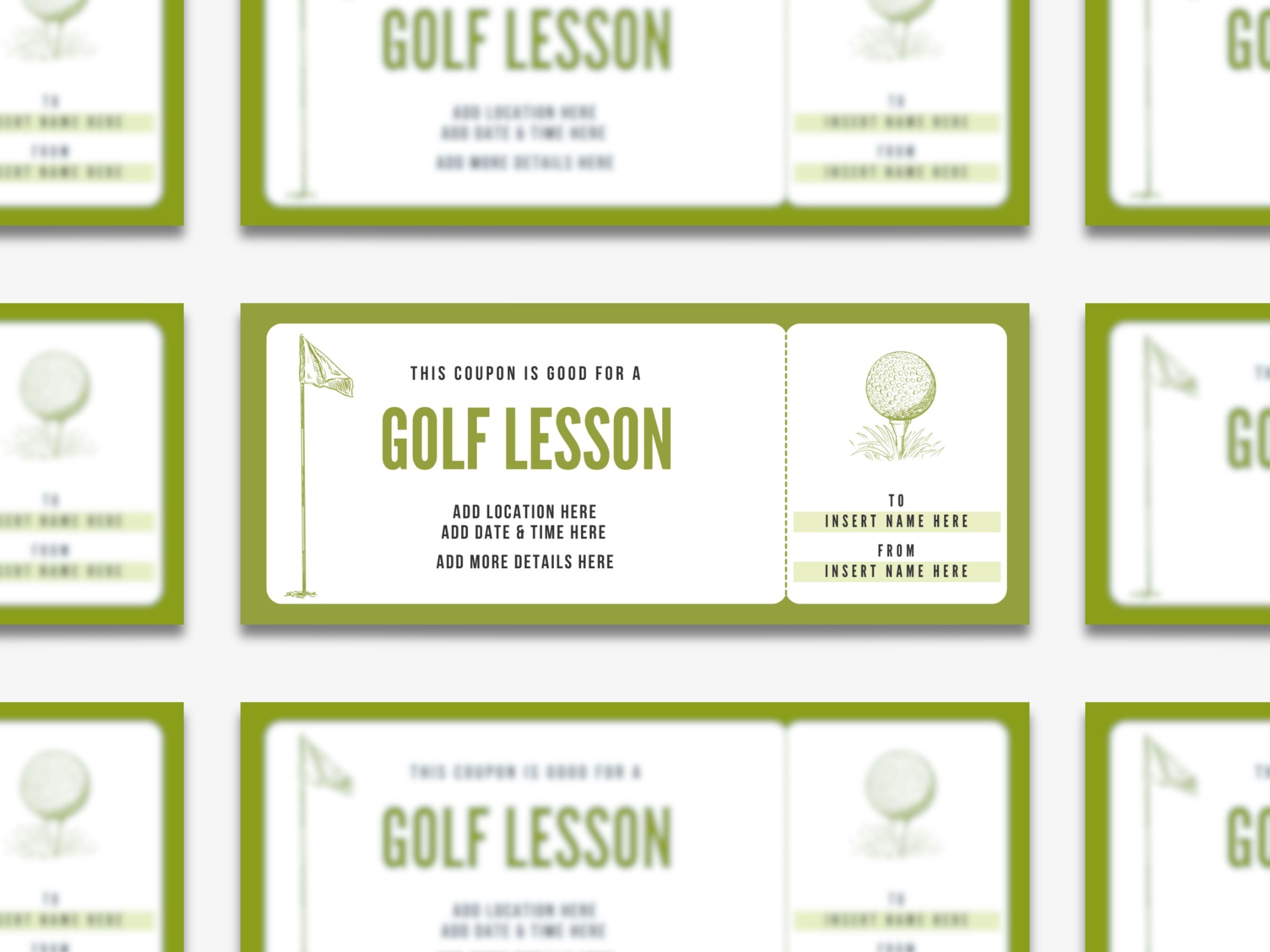 Golf Lesson Gift Voucher Template Editable Golfing Lesson Ticket