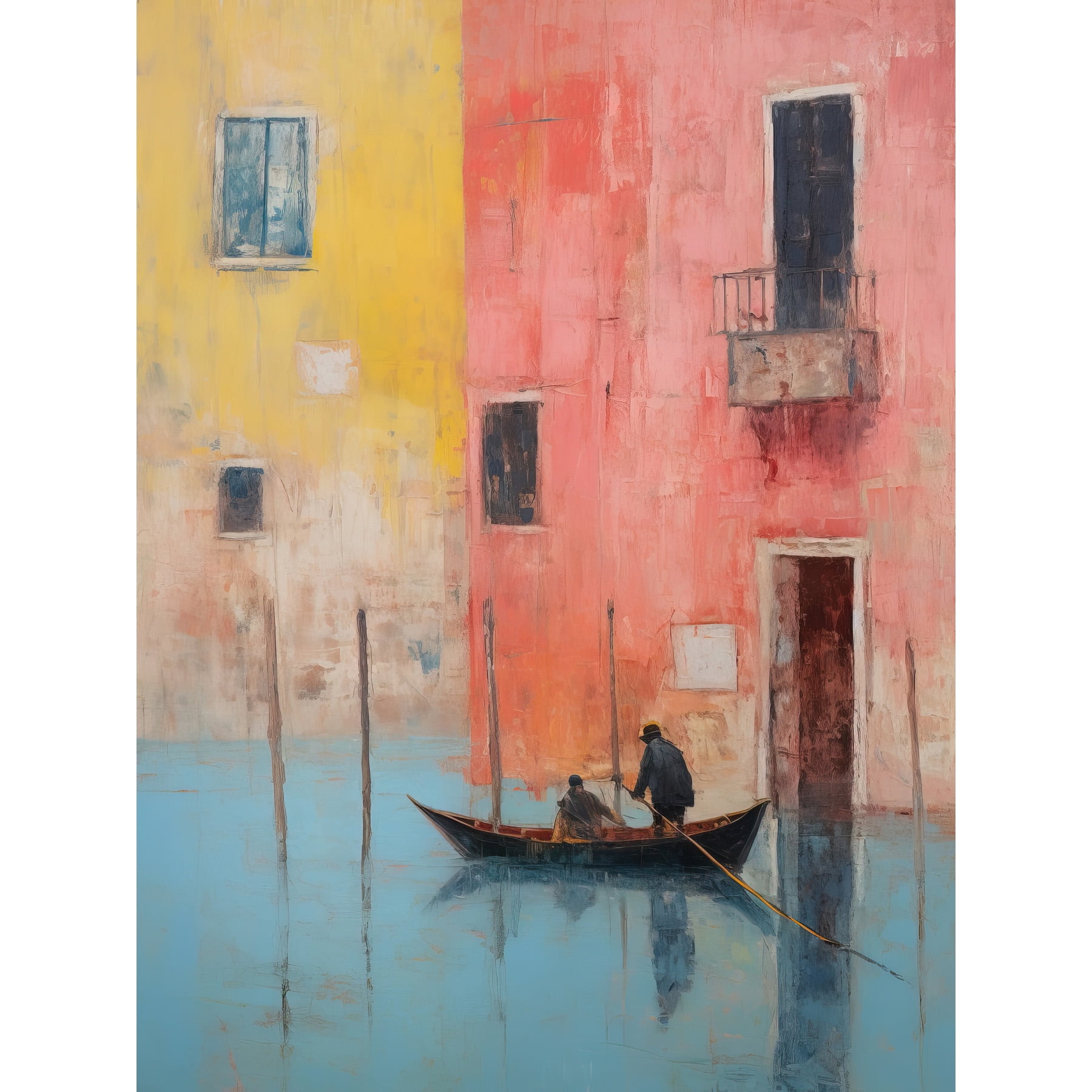 Venice Canal Gondola Ride Oil Painting Blue Pink Yellow Pastel Colour