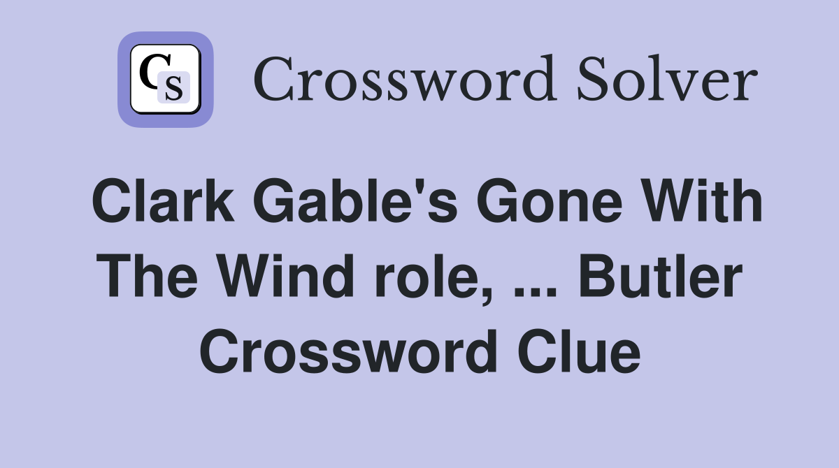 Clark Gable #39 s Gone With The Wind role Butler Crossword Clue