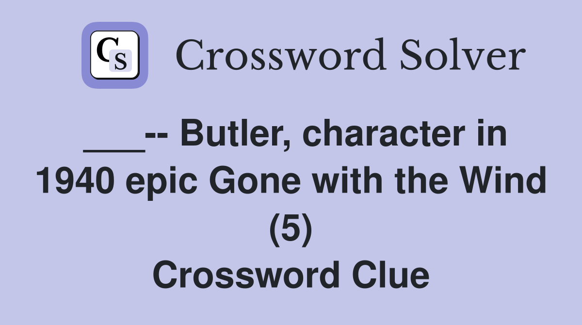 Butler character in 1940 epic Gone with the Wind (5) Crossword Clue
