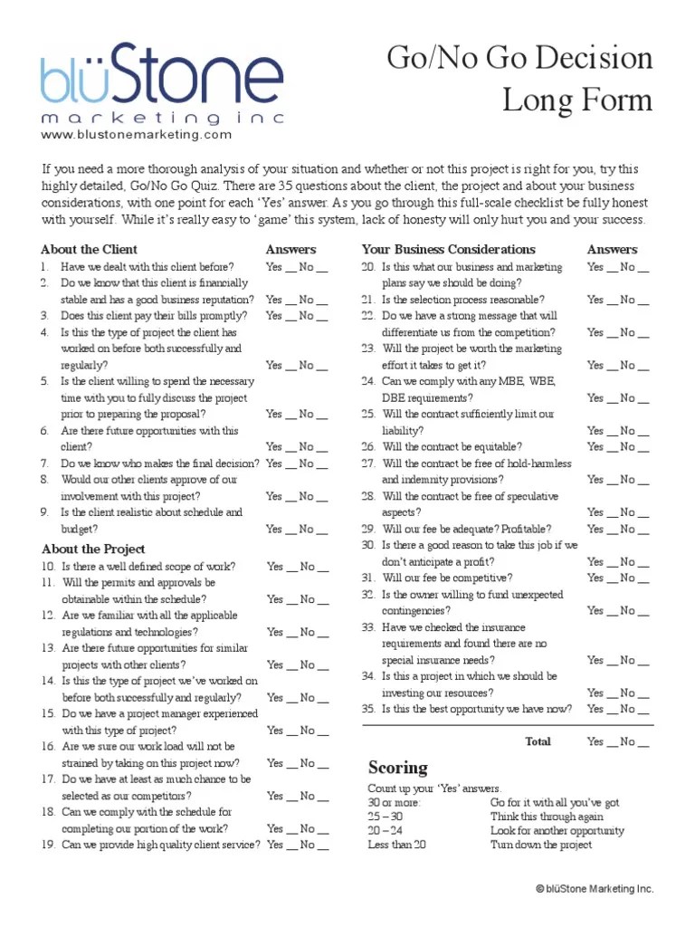 Go No Go Weighted Proposal Decision Matrix for Excel Google Sheets