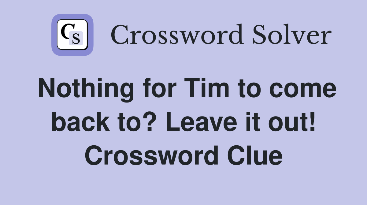 Nothing for Tim to come back to? Leave it out Crossword Clue Answers