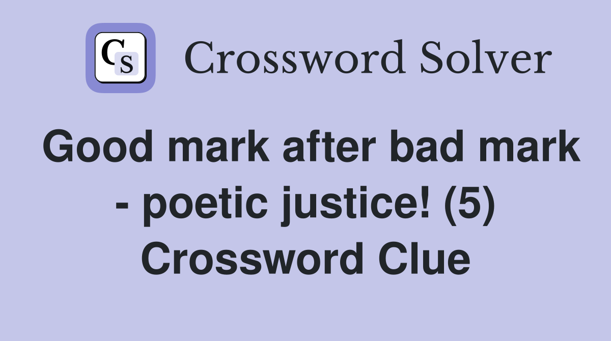 Good mark after bad mark poetic justice (5) Crossword Clue Answers