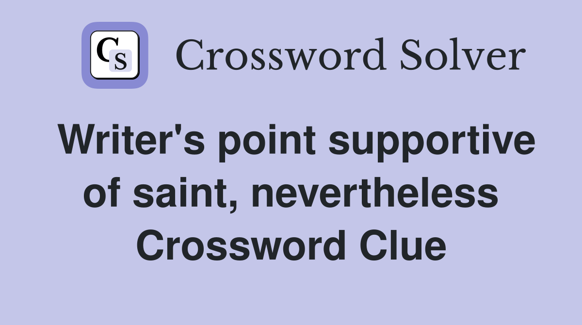 Writer #39 s point supportive of saint nevertheless Crossword Clue