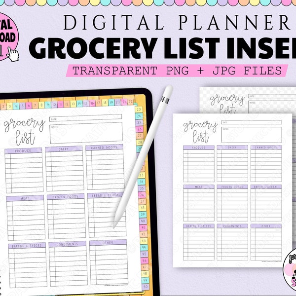 Digital Grocery List Template Grocery List Ipad Goodnotes Etsy