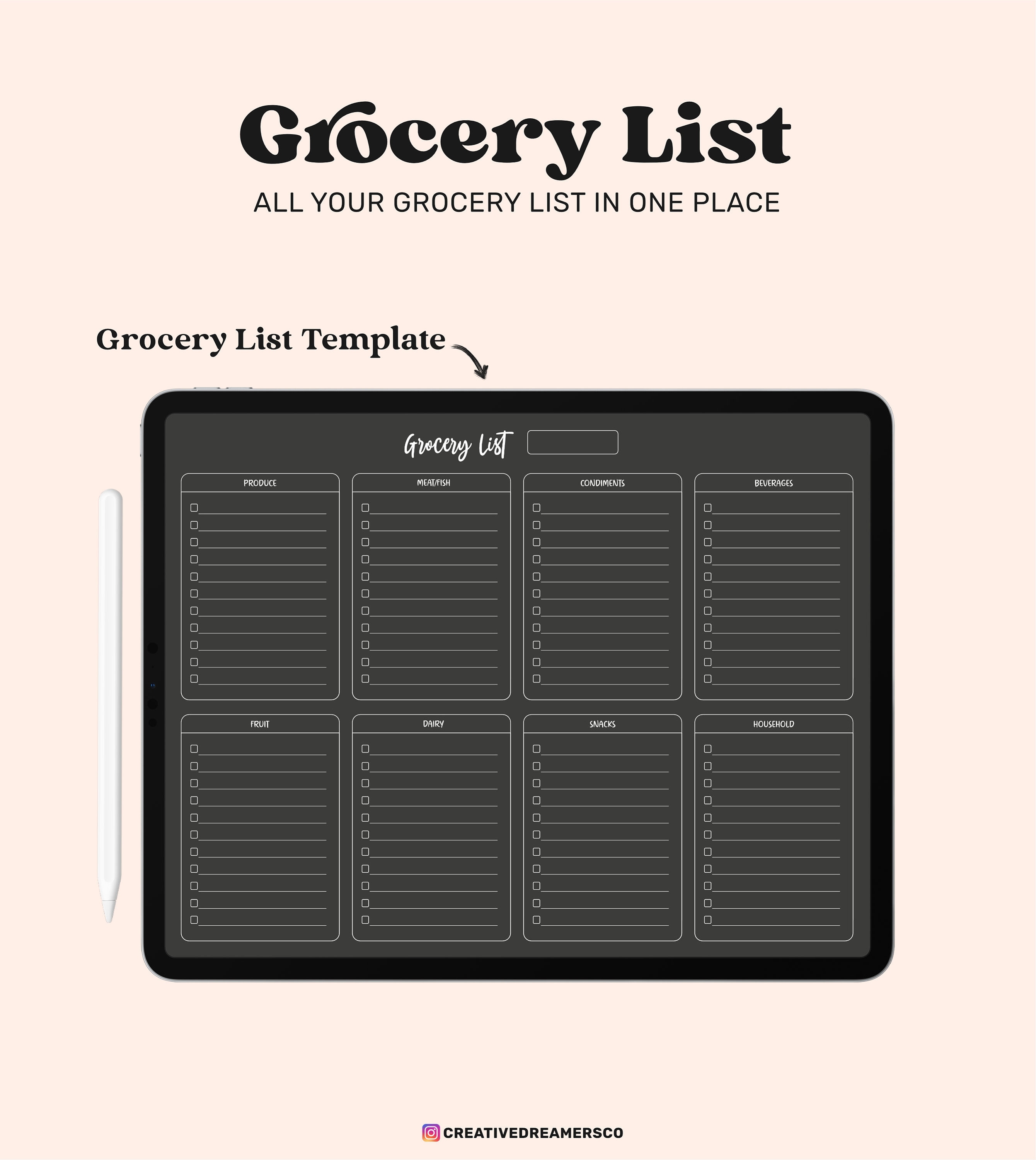 Digital Grocery List Template Grocery List Ipad Pdf Download