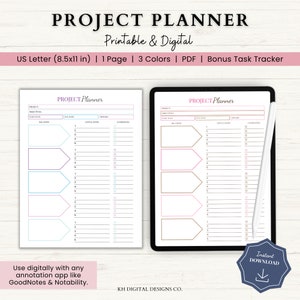Digital Project Planner Pdf and Tracker Template for Goodnotes and Ipad