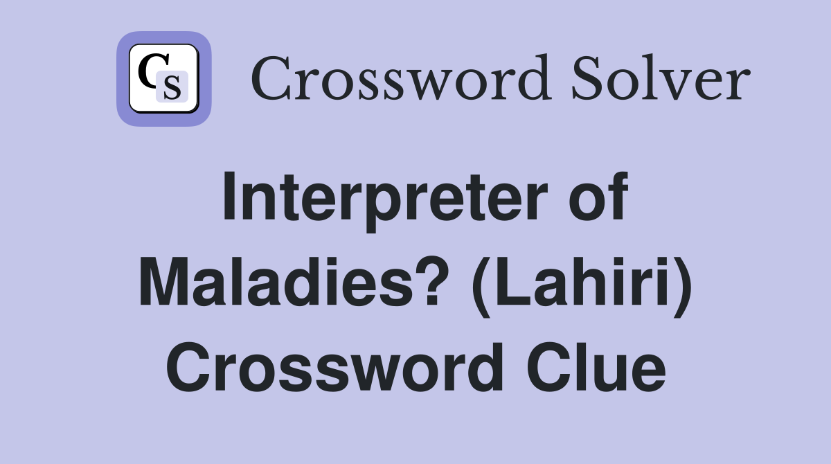 Interpreter of Maladies? (Lahiri) Crossword Clue Answers Crossword