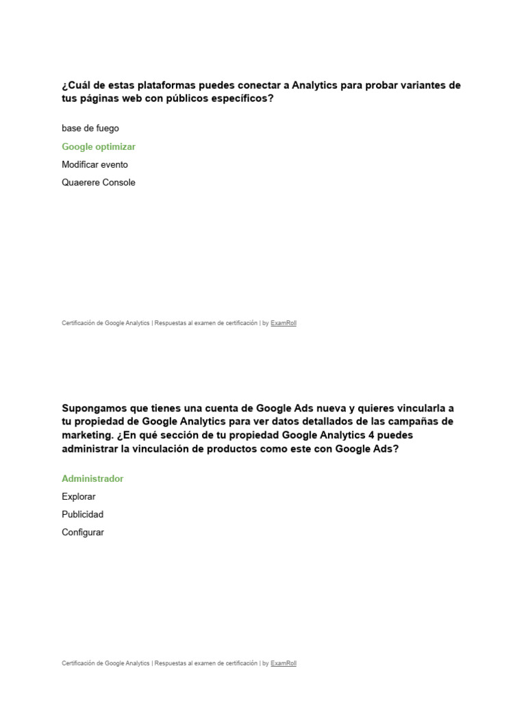 Google Analytics 4 Certification Answers ES LATAM PDF Aplicación