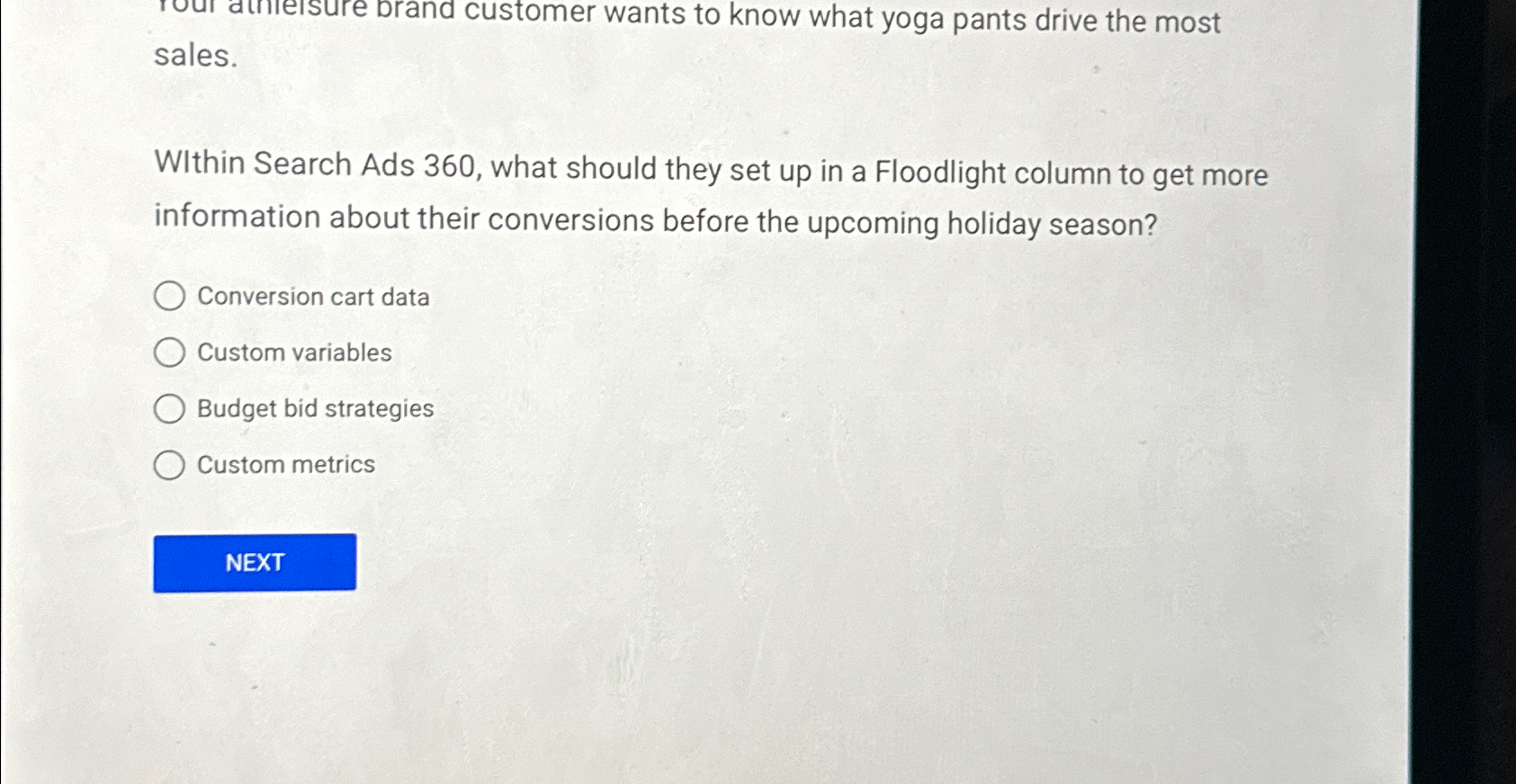Solved sales WIthin Search Ads 360 what should they set up Chegg com