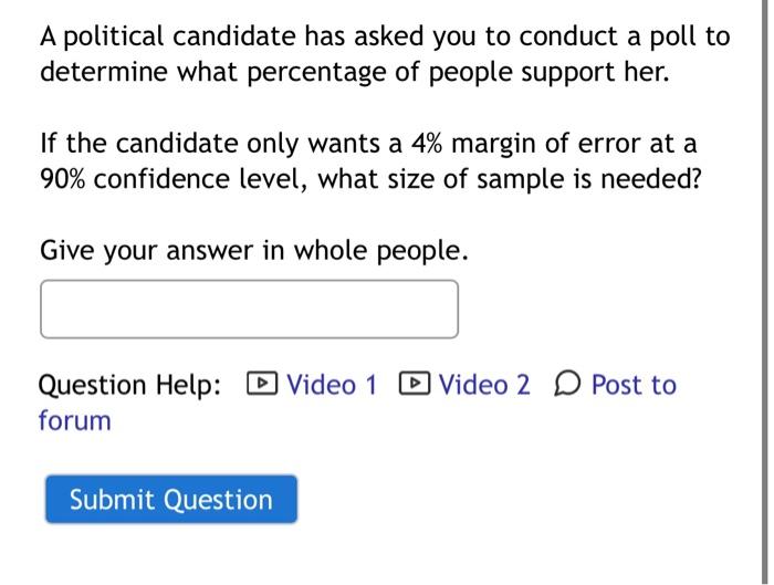 Solved A political candidate has asked you to conduct a poll Chegg com