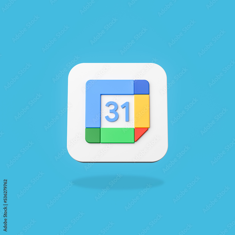 Google Calendar App Icon on Flat Blue Background Stock Illustration