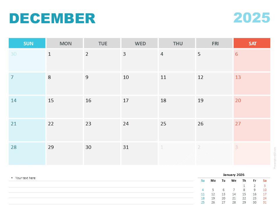 Minimal 2026 Calendar (Monday Start) for PowerPoint