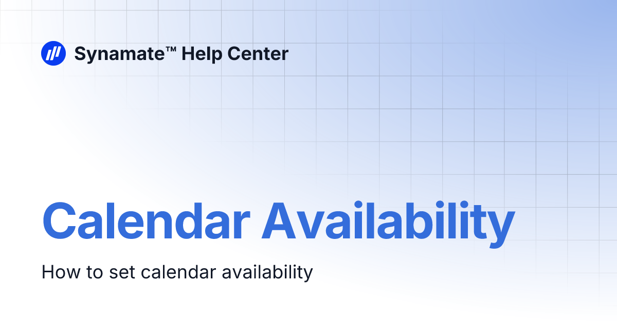 Calendar Availability Synamate™ Help Center