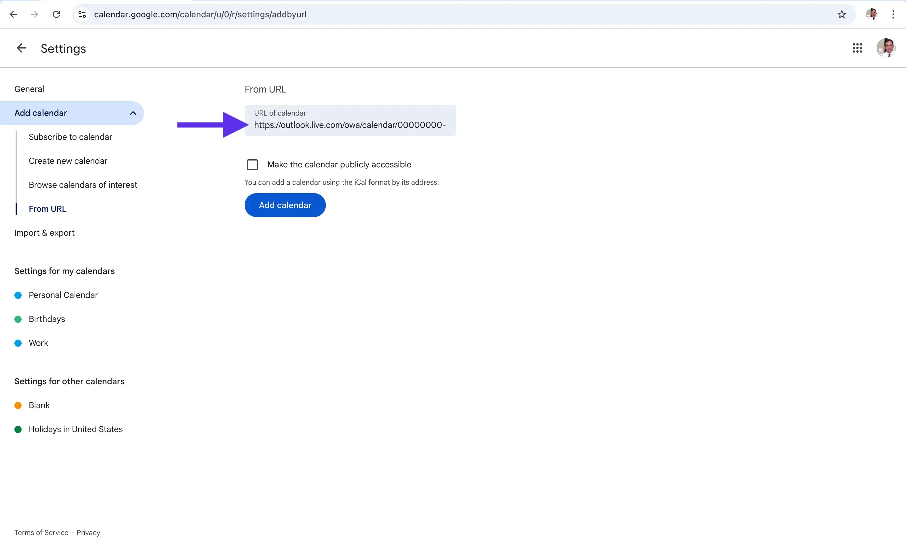 How can I get my ICS/ICal link from a Google Calendar to auto import