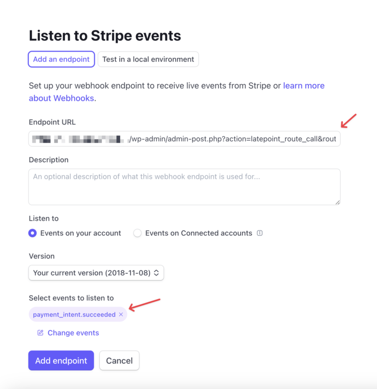 Setup webhook for Stripe payment notification LatePoint Documentation