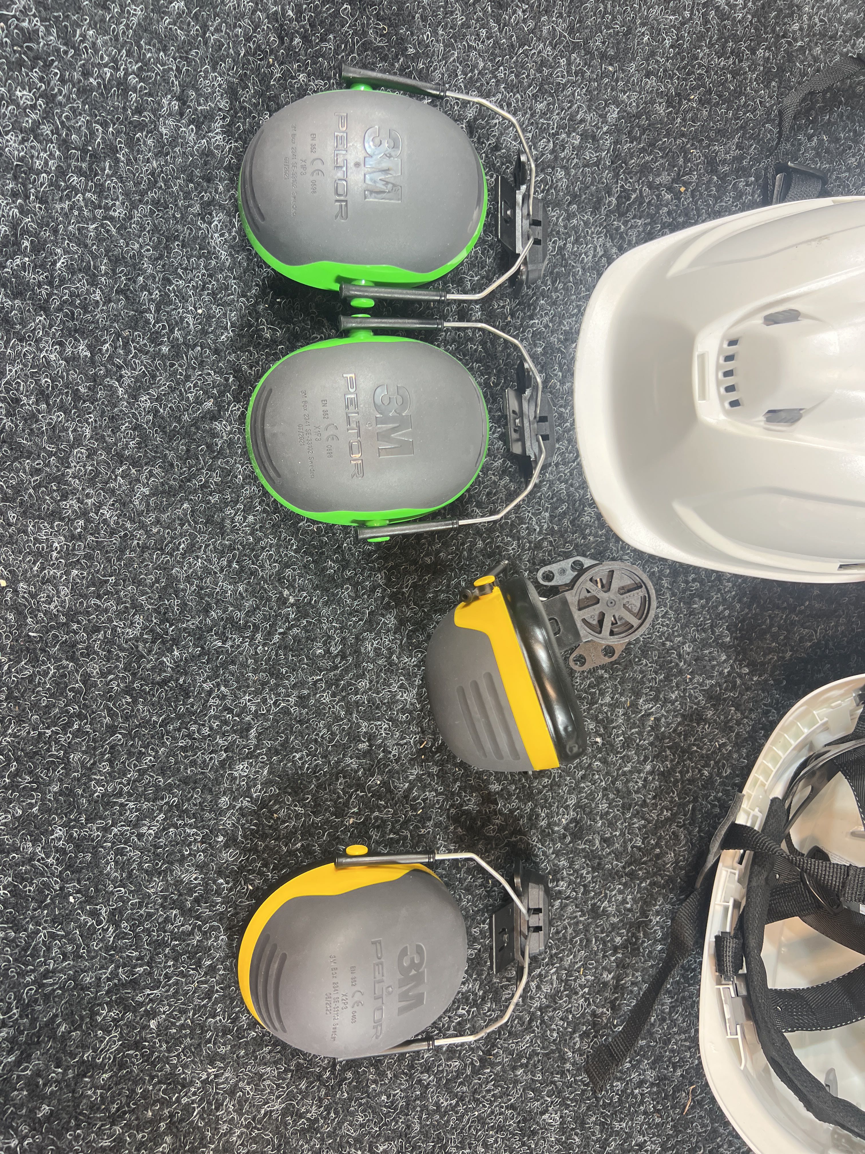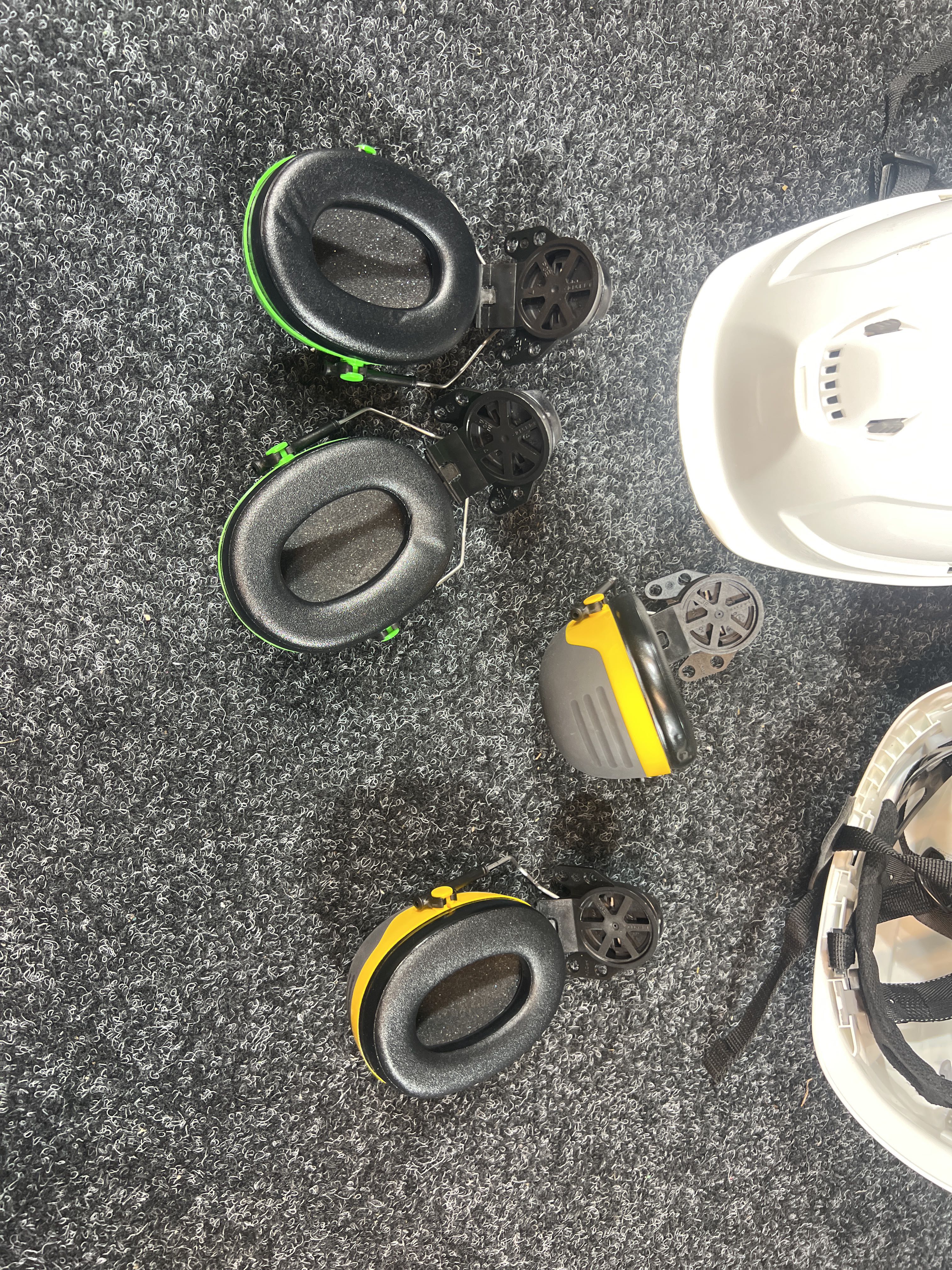 Work helmets 2 pcs and removable ear muffs 2 pairs PS Auction We