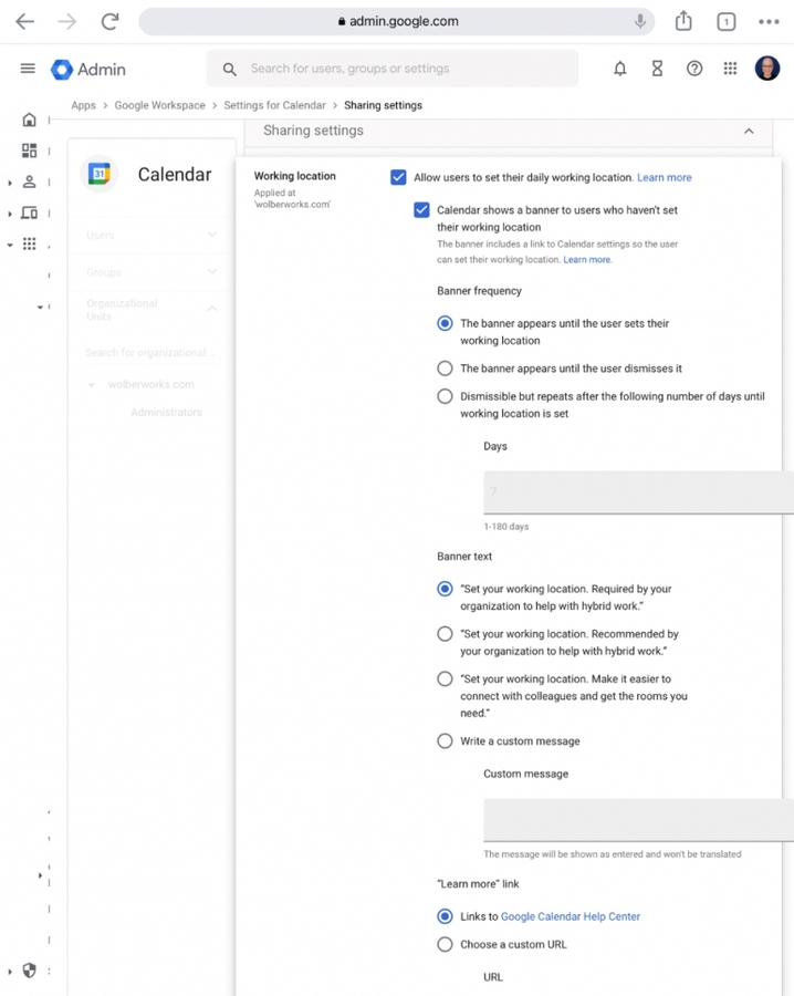 How to manage working location in Google Calendar