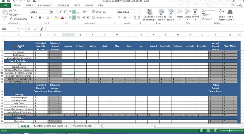 Budget Spreadsheet Personal Expense Spreadsheet Template Etsy