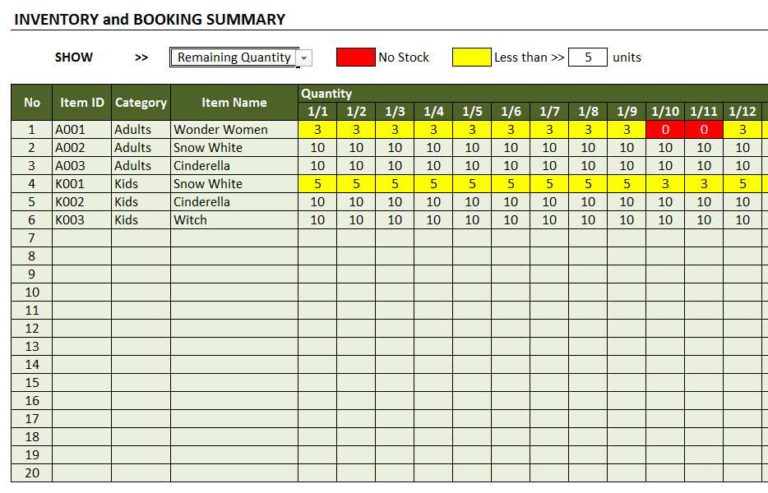 Costume Rental and Booking Template EXCELTEMPLATES org