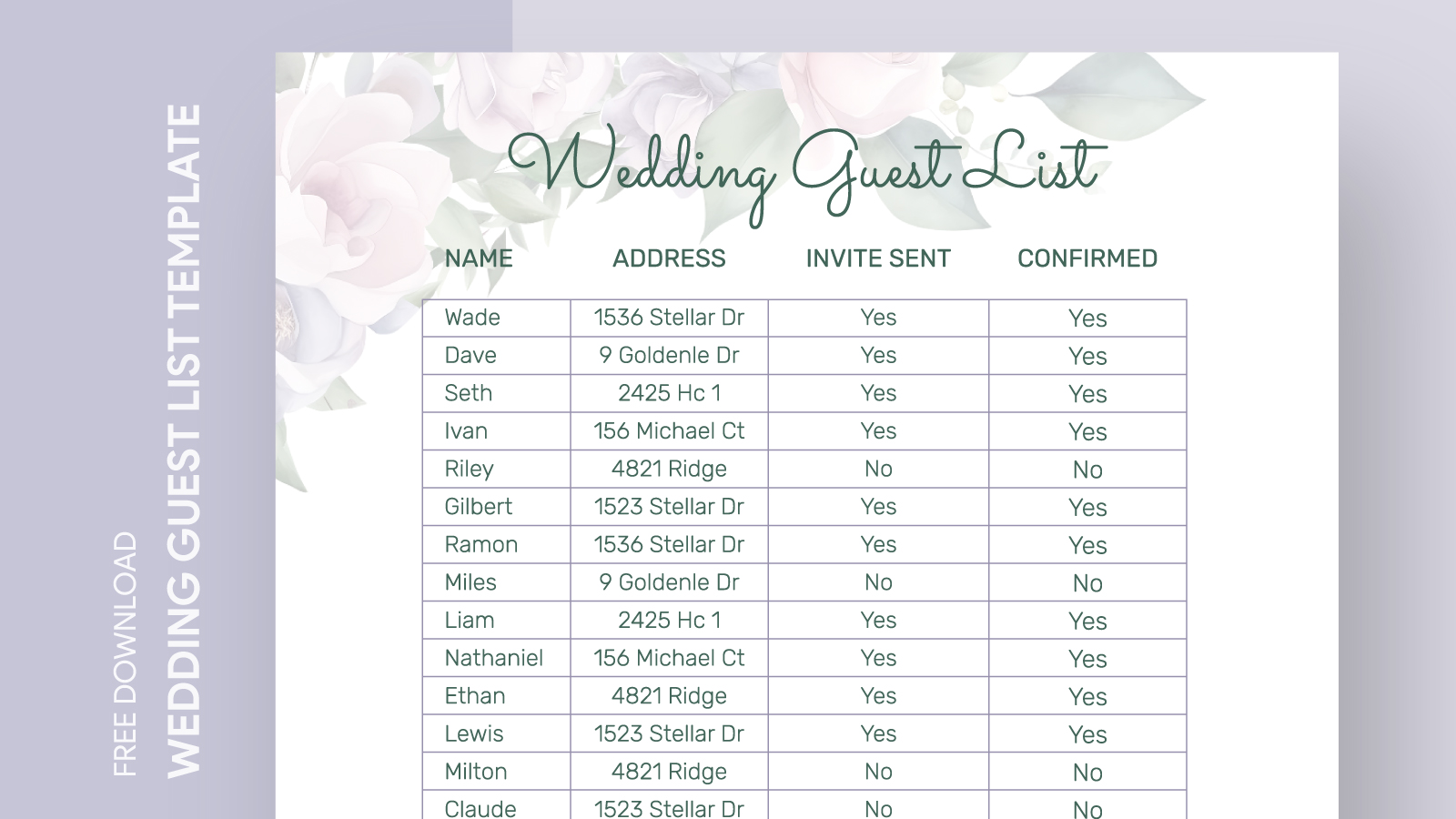 Free Wedding Guest List Template Excel Word PDF Sheets and Google Docs
