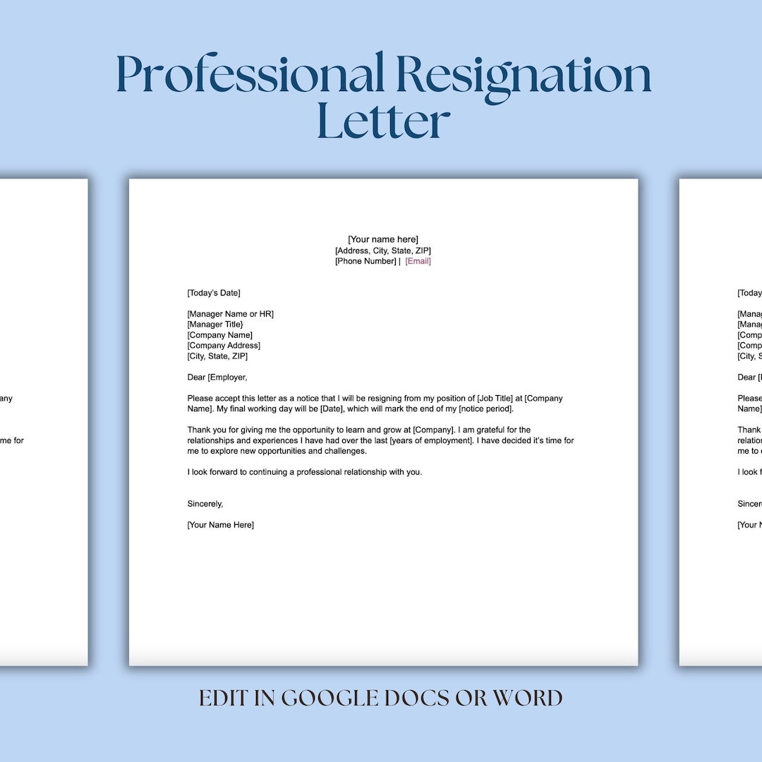 Resignation Letter Template Bundle for Microsoft Word and Google Docs
