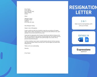 RESIGNATION LETTER TEMPLATE Google Docs/microsoft Word/ Canva Notice