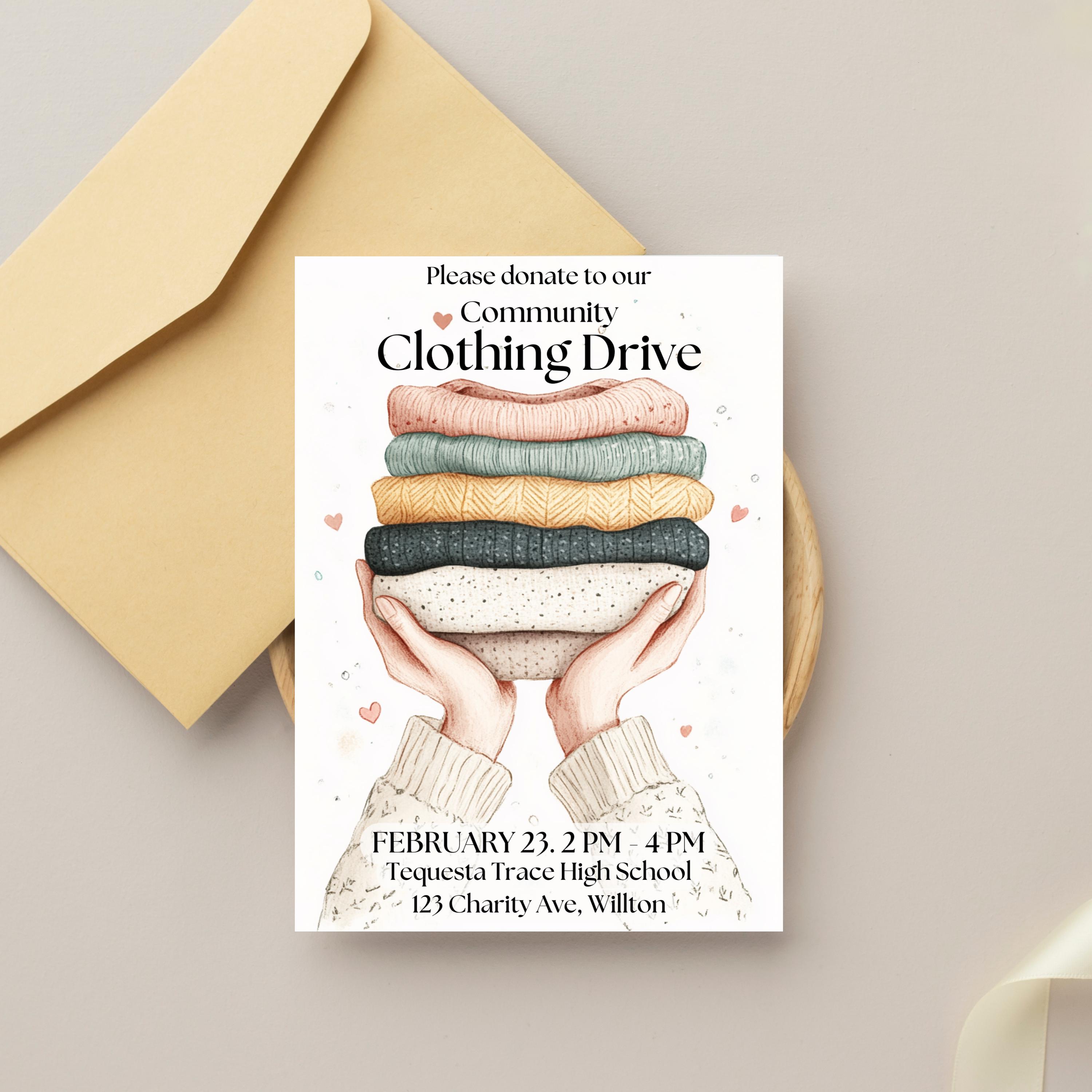 Clothing Donation Drive Invitation Community Charity Event Editable