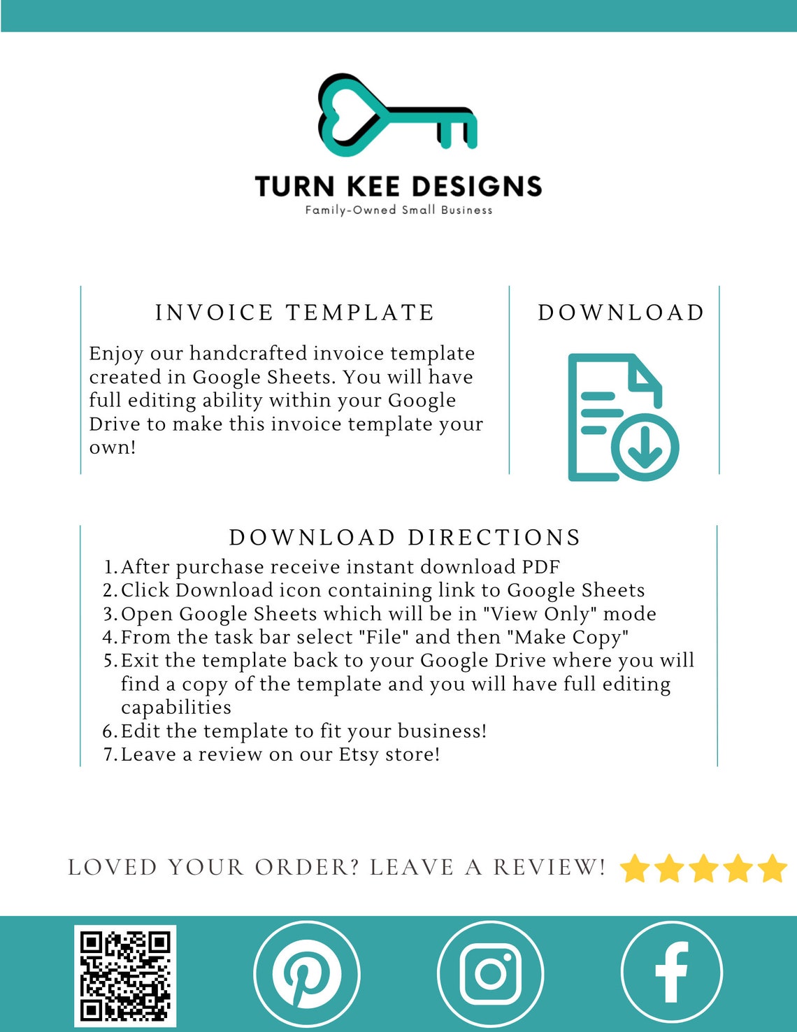 Invoice Template Google Sheets Freelance Invoice Printable Etsy