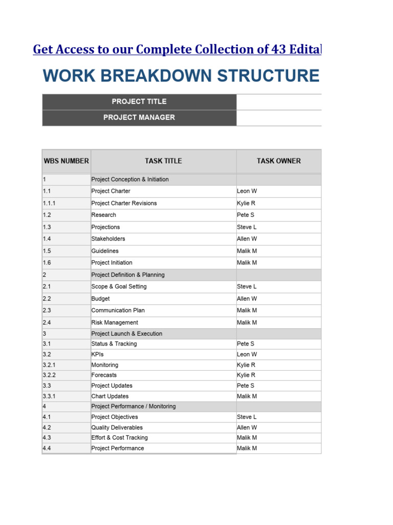 Work Breakdown Structure Template