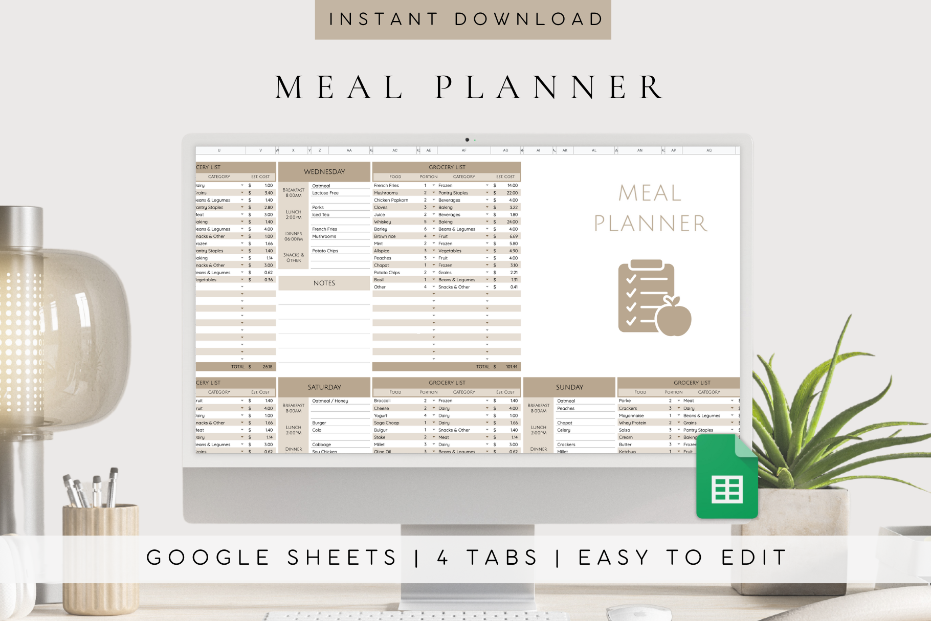 Free Google Sheets Meal Planning Template with Grocery List Finding