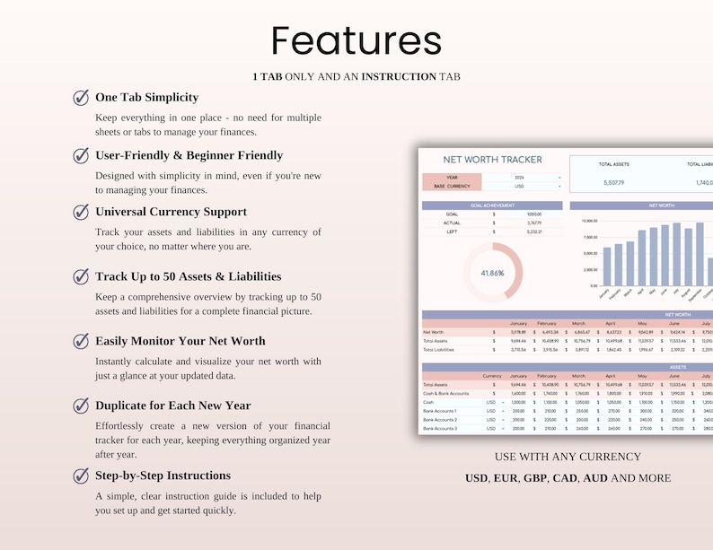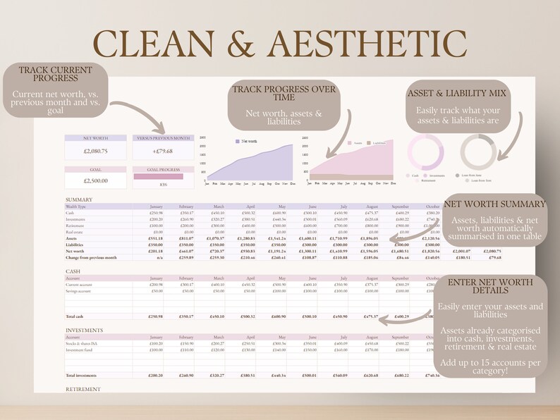 Net Worth Tracker Spreadsheet Template for Google Sheets Etsy