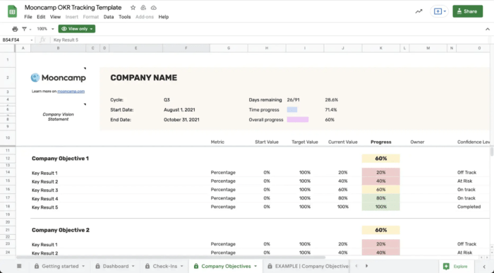 Google Sheets Okr Template