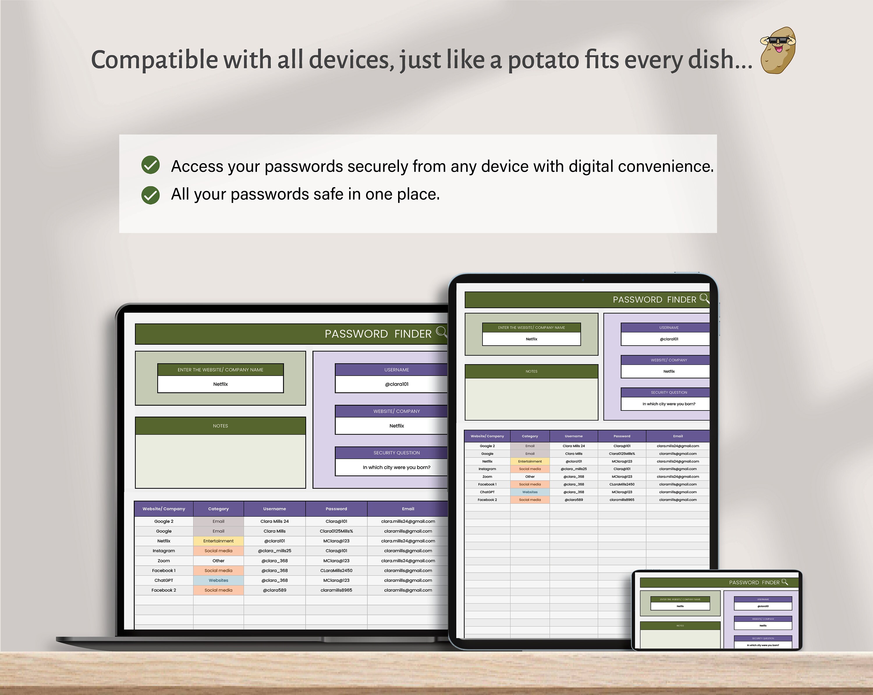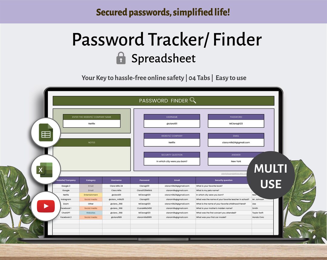 Password Tracker for Google Sheets Password Organizer Spreadsheet