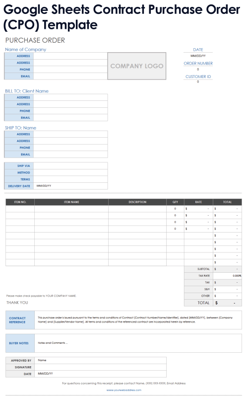 Google Sheets Purchase Order Template