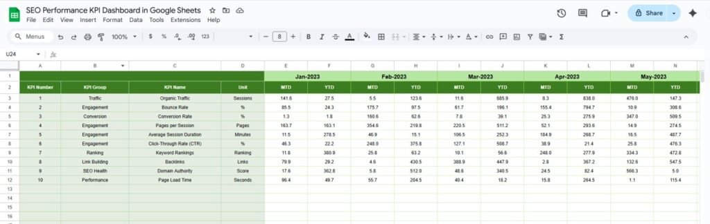 SEO Performance KPI Dashboard in Google Sheets Next Gen Templates