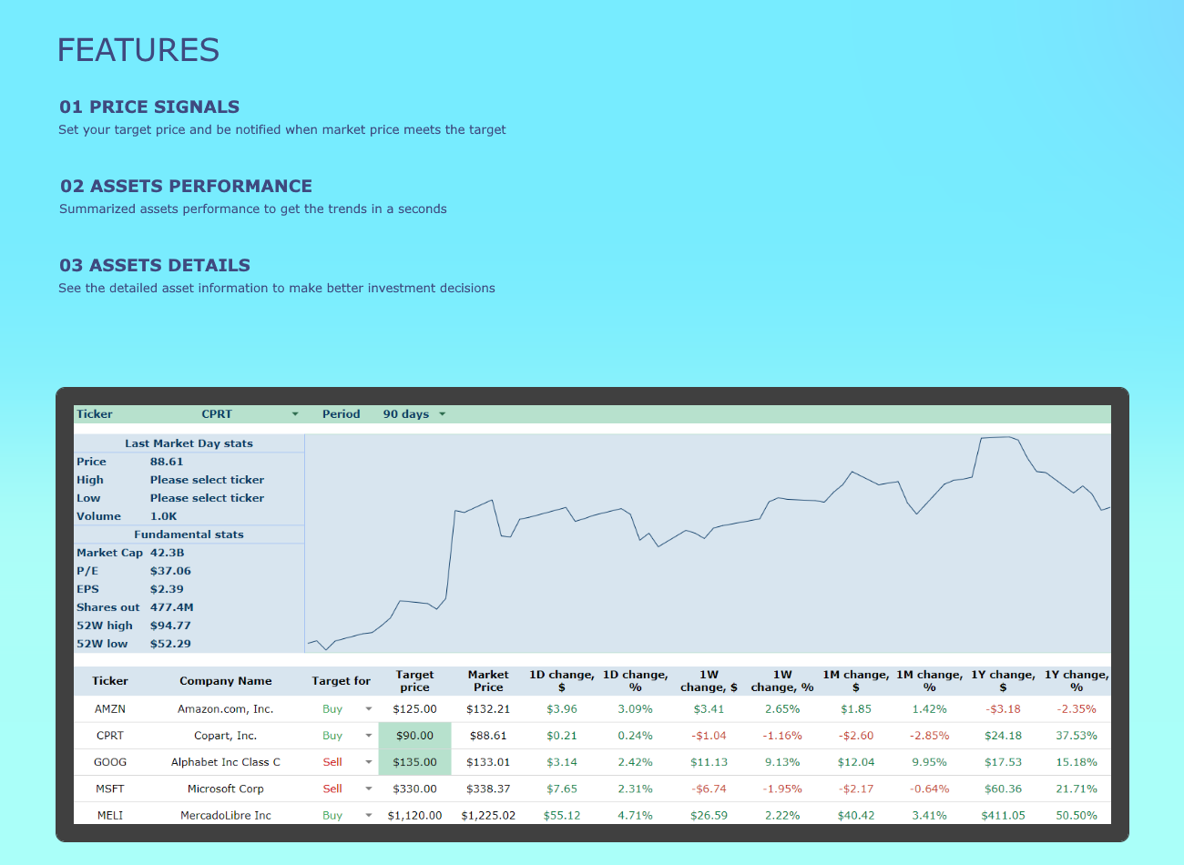 Stock tracker templates for Google Sheets (Portfolio watchlist)