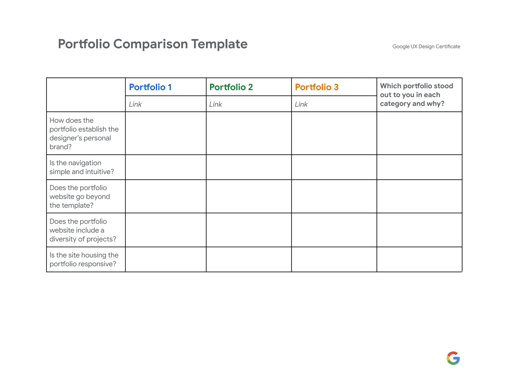 Google UX Design Certificate Portfolio Comparison Template pdf