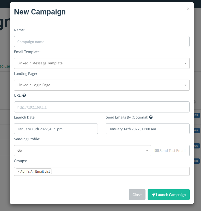 Campaigns In GoPhish HailBytes