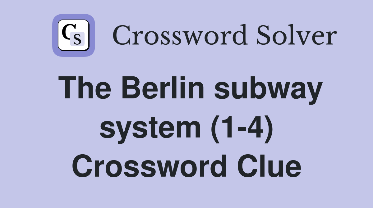 The Berlin subway system (1 4) Crossword Clue Answers Crossword Solver