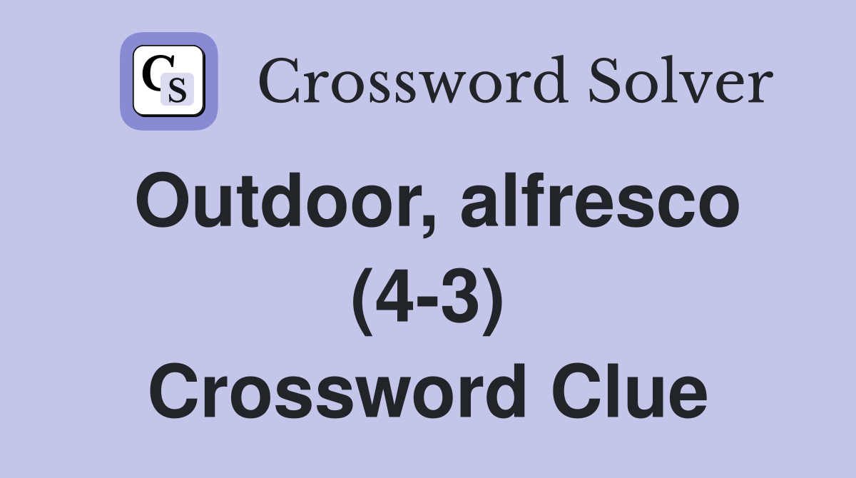 Outdoor alfresco (4 3) Crossword Clue Answers Crossword Solver