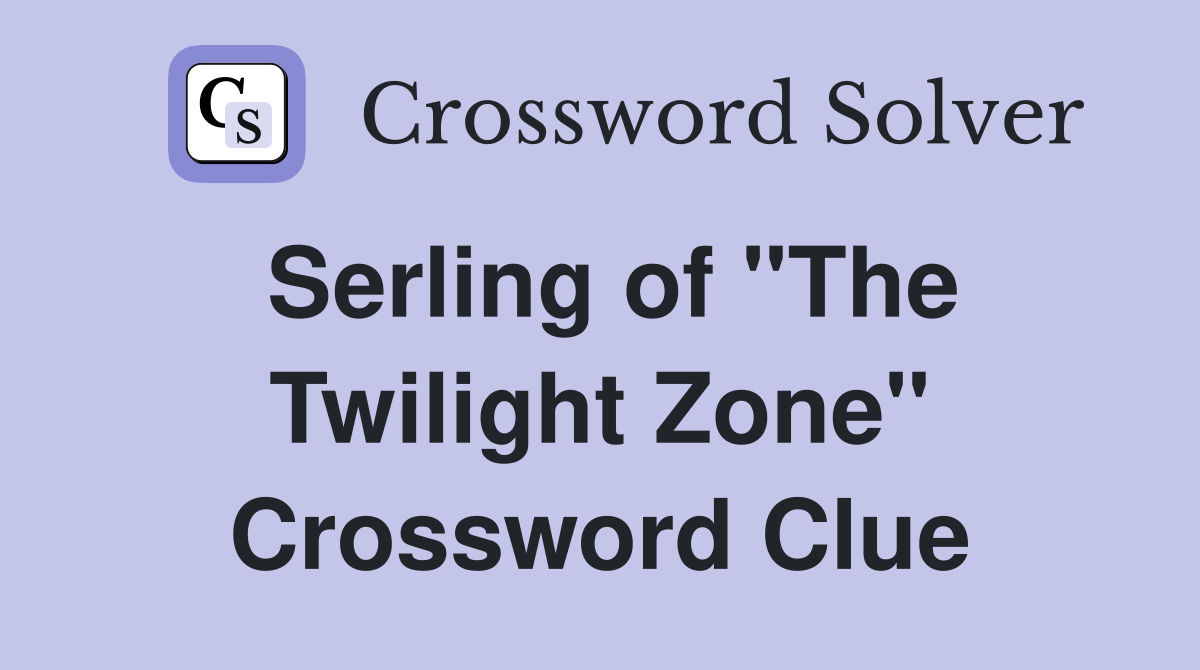 Serling of quot The Twilight Zone quot Crossword Clue Answers Crossword Solver