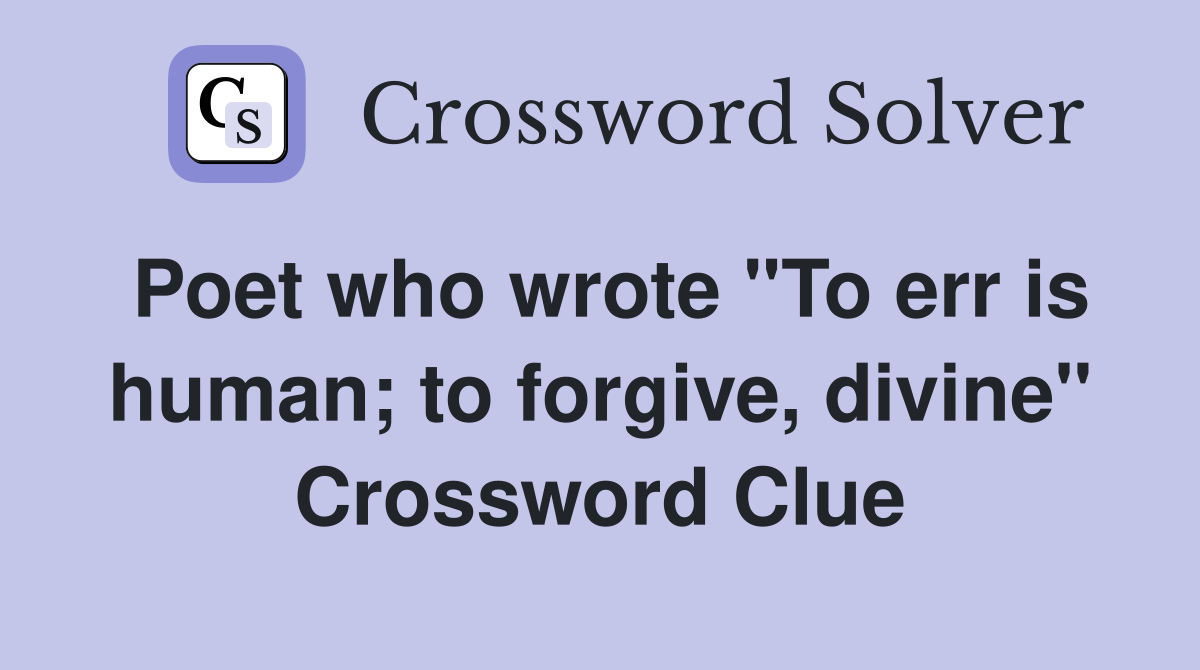 Poet who wrote quot To err is human to forgive divine quot Crossword Clue