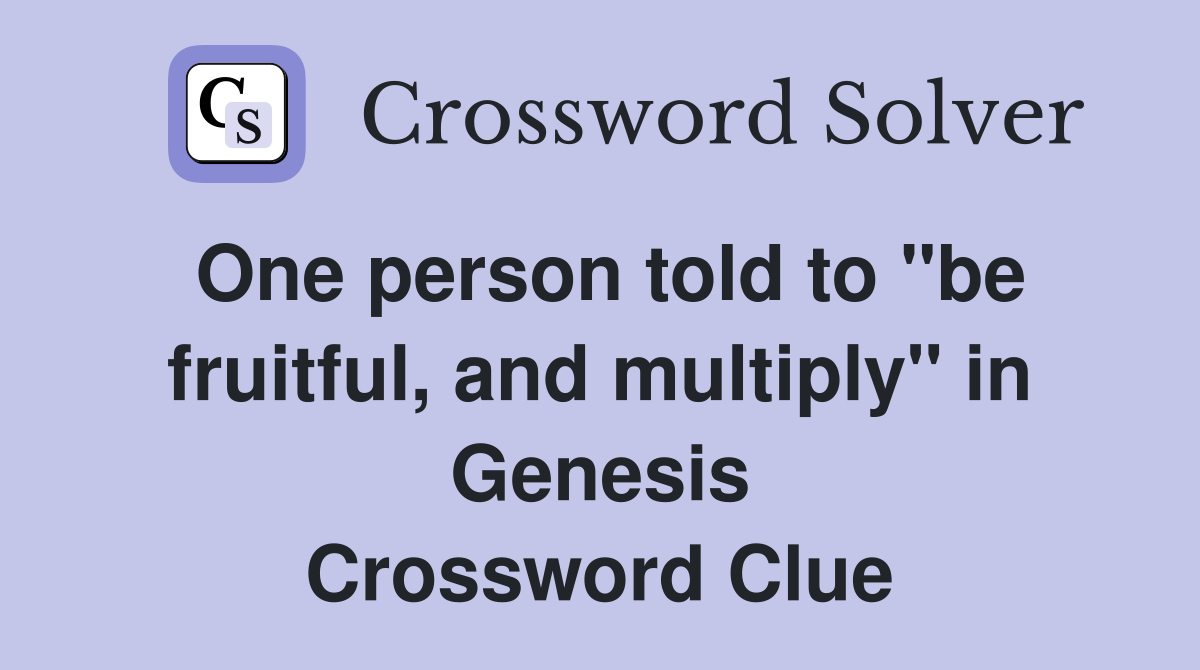 One person told to quot be fruitful and multiply quot in Genesis Crossword