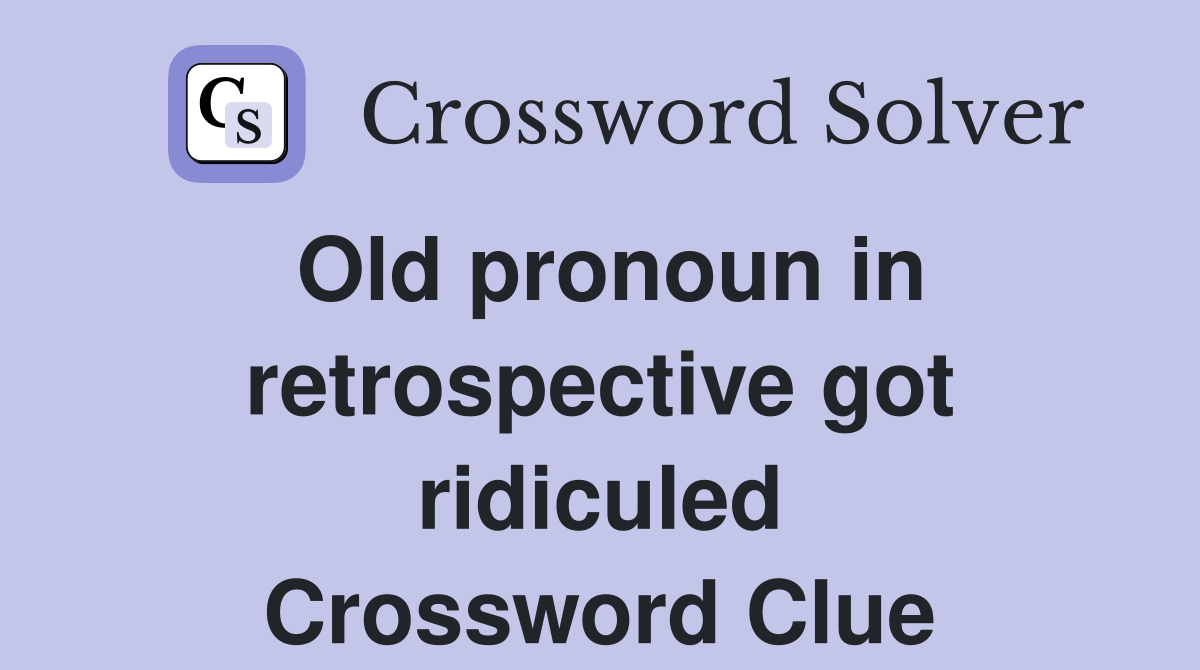 Old pronoun in retrospective got ridiculed Crossword Clue Answers