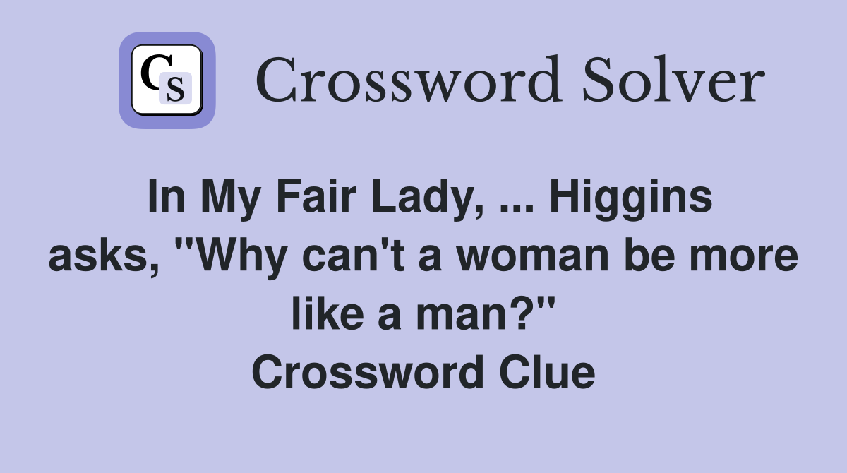In My Fair Lady Higgins asks quot Why can #39 t a woman be more like a