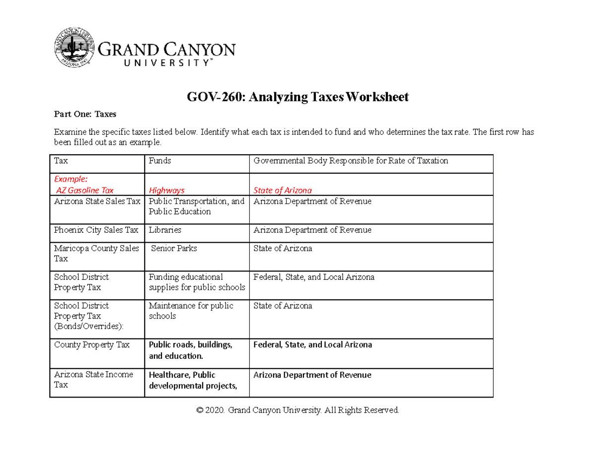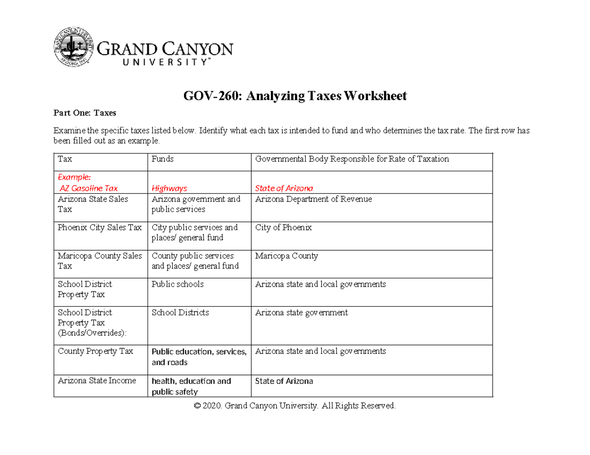 GOV 260 Analyzing Tax Worksheet GOV 260 GCU Studocu