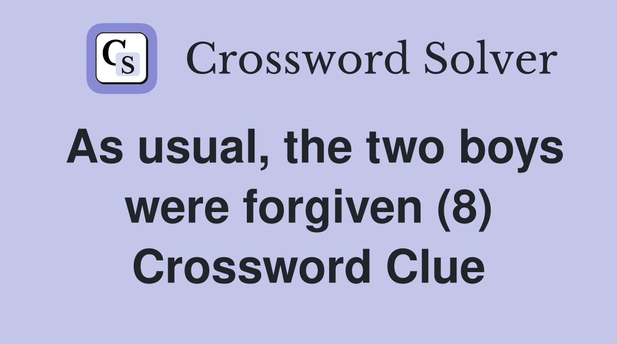 As usual the two boys were forgiven (8) Crossword Clue Answers