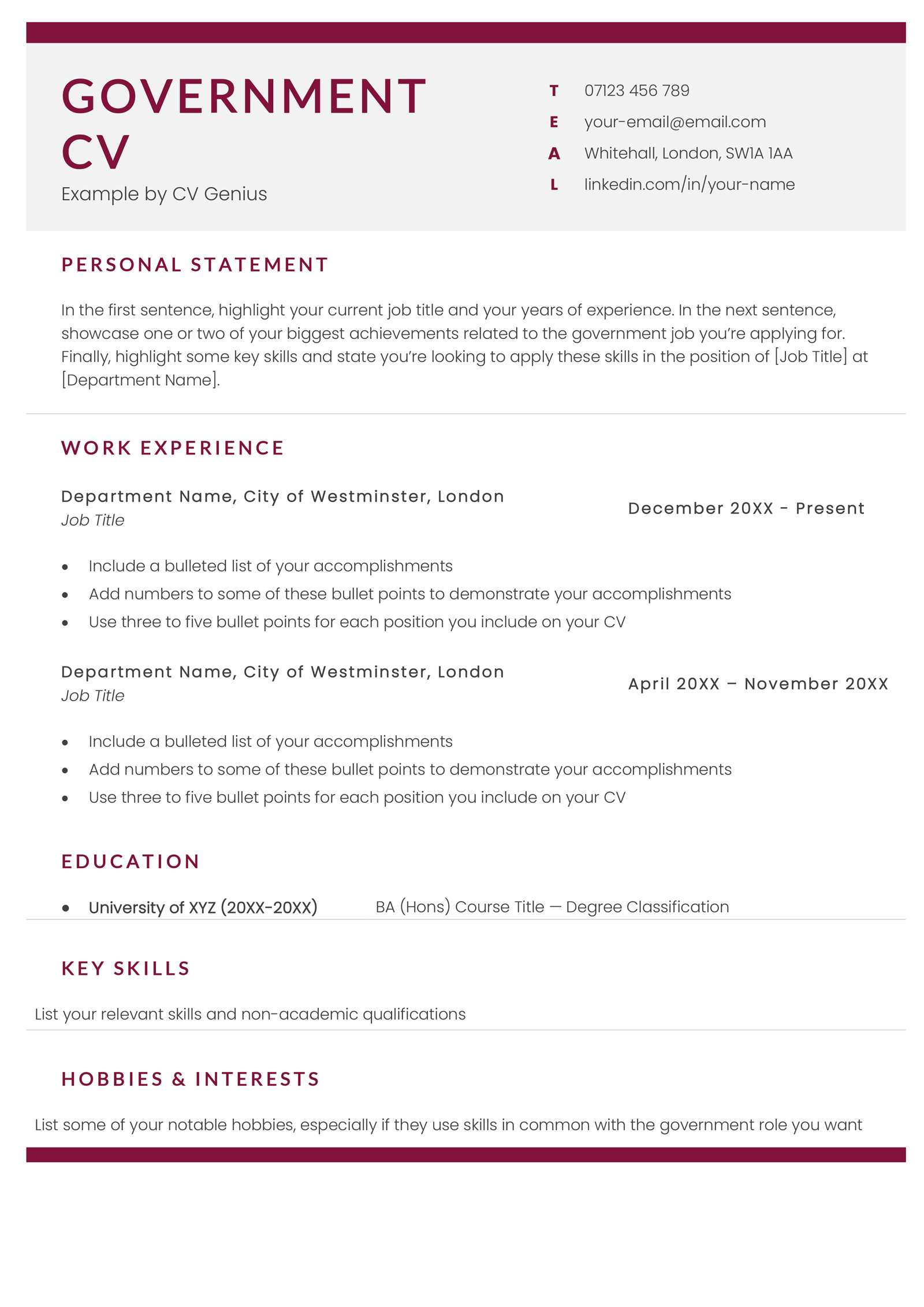 8 Free Government CV Templates (UK Civil Service)
